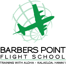 Barbers Point Flight School on Oʻahu, Hawaii. Vertical logo, for use in square spaces.